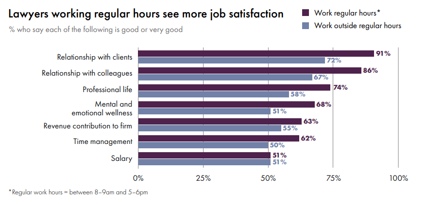 As the report shows, 2021 was a rebound year for the legal industry. Demand for legal services increased while the industry recovered from the disruptions from the early days of the pandemic. However, the lines between work and life have become increasingly blurred with the increased flexibility of work and variable locations.