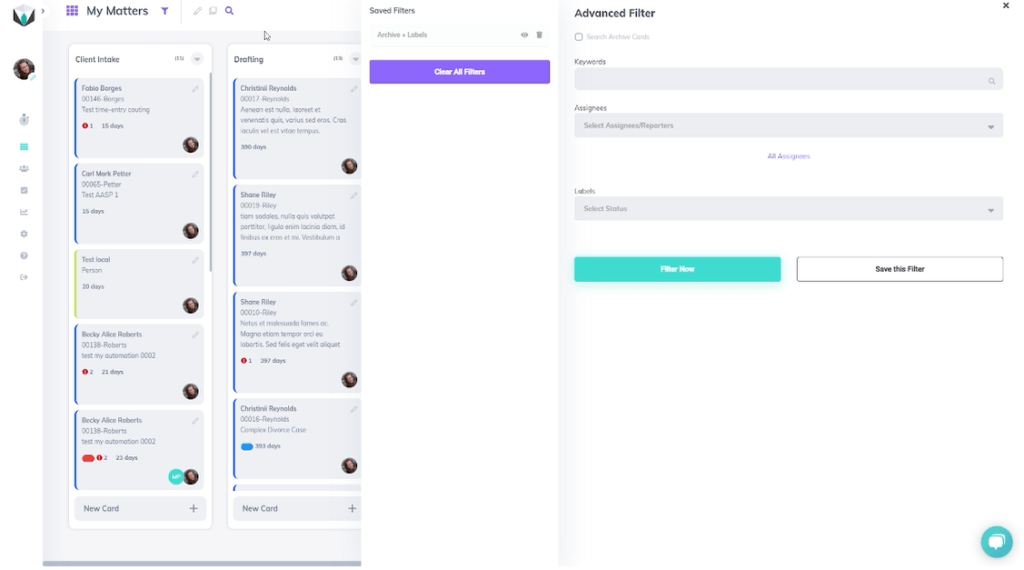 Again, we’ll open the filter sub-menu through the “Add Filters” icon. Then, we’ll add this second assignee (Mike Patton) and select the “Save this Filter” button to save our selections.