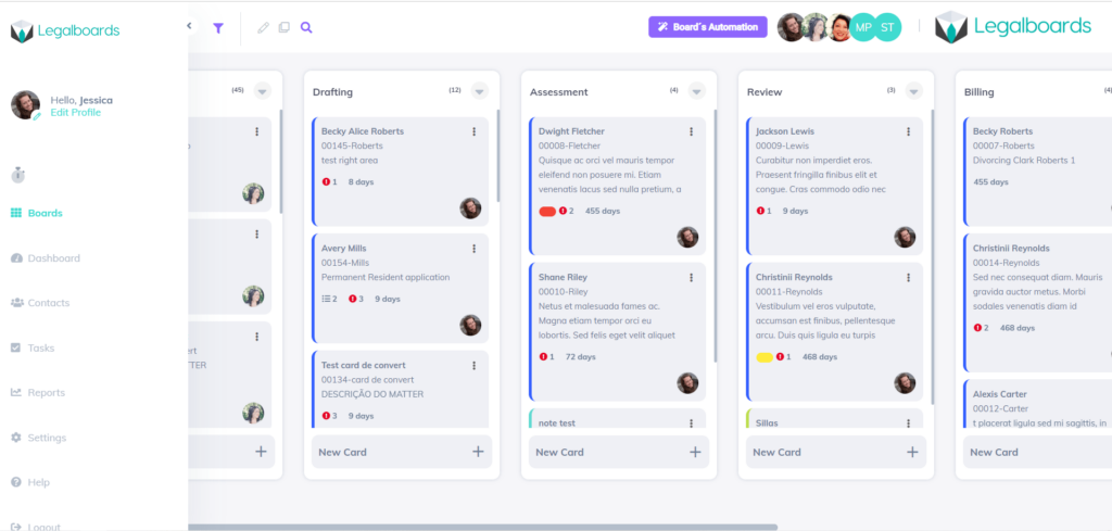 Let’s take a tour of the dashboard within Legalboards.